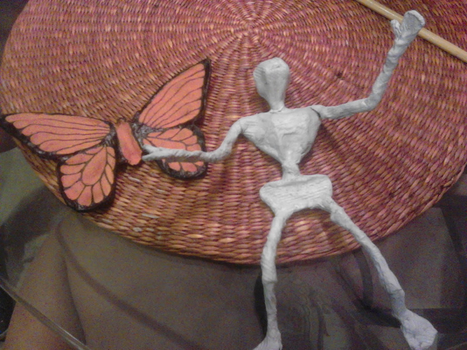 My independent component helped me answer on of my questions from my EQ because in Mexico, all their art pieces have history in them. For instance pinatas, they have been around for decades. They are made simply with wire and paper. When I decided to make the Skeleton with Monarch Wings I thought how pretty similar they are to pinatas. They both require you to make a figure with wire then apply all the paper and decorate. It was also very helpful because with this component I was able to somewhat master the Sermel paper mache technique that is used in Tonala, Mexico. I was able to learn from the mistakes in the beginning and correct them by making a better papier mache figure.